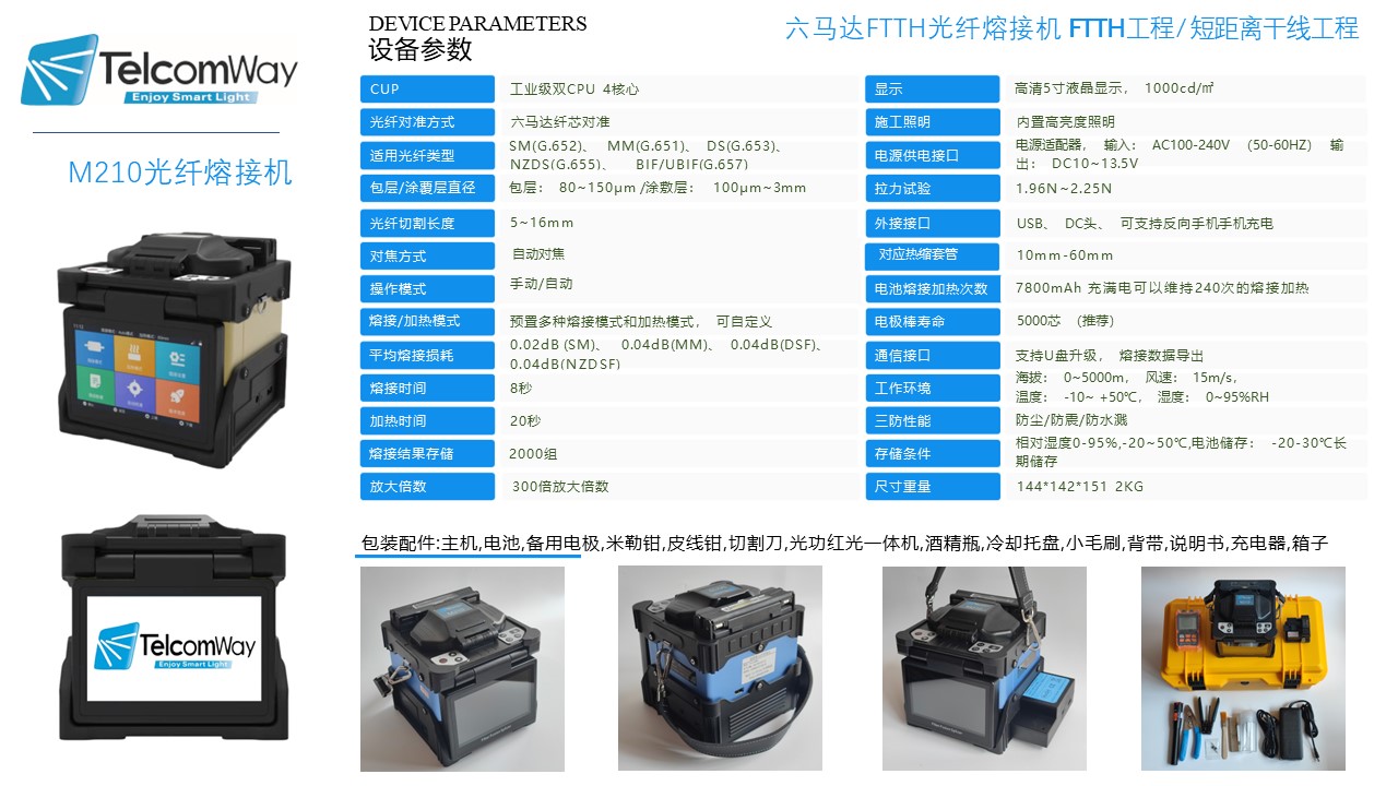TelcomWay M210 光纖熔接機 六馬達長線主干工程熔纖機光纜接續機